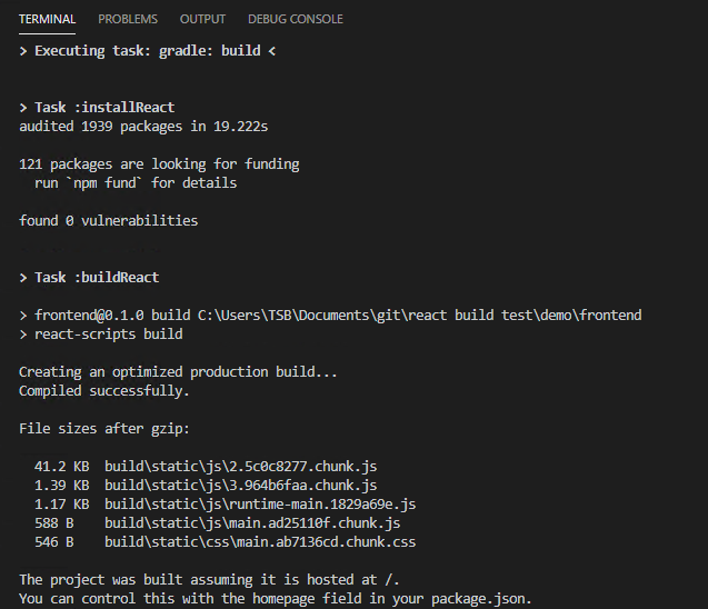 프론트엔드 react, 백엔드 Spring boot에 gradle 사용하는 개발 프로젝트에서 빌드시 npm까지 빌드해서 war파일로 한큐에 만들기