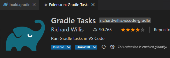 vs코드에서 gradle task 익스텐션을 설치하면 gradle build가 가능하다.